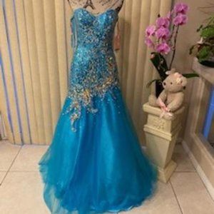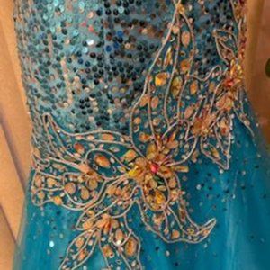 Stunning Turquoise Strapless Embellished Formal Evening Gown Size 6
