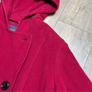 Woman’s Pendleton Red Pea Coat with Hood and Double-Breasted Design Size 16W Preowned Good Conditions