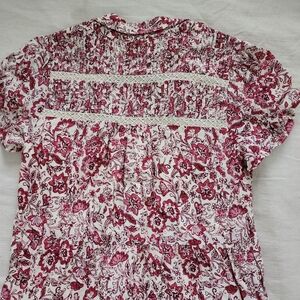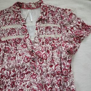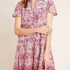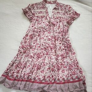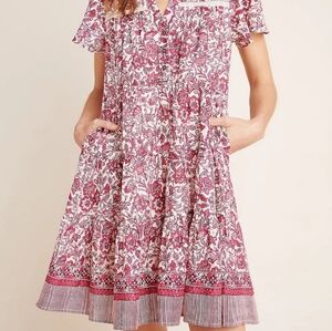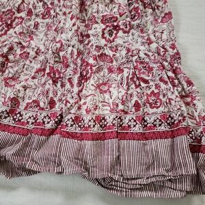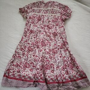 Anthropologie Georgina floral maroon cream dress flowy midi womens small