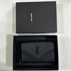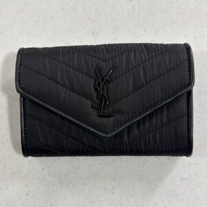 YSL Cassandra Nylon Small Envelope Wallet Quilted Black with Box and Dust Bag