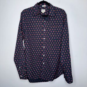 J. Crew Men’s Floral Secret Wash Long Sleeve Shirt Navy Blue Size Medium