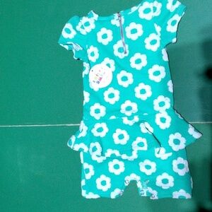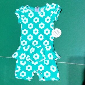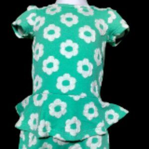 Dot Dot Smile - Green Floral Peplum-Skirted Romper infant Size 6-12 Months NWT