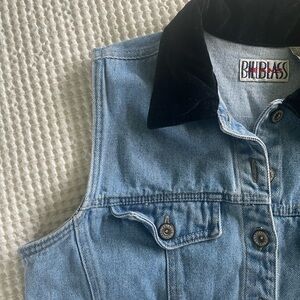 Bill Blass Vintage Denim Jean button up Vest top velvet collar size m