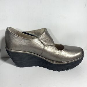 Fly London Yasi Metallic Bronze Leather Platform Wedge Shoes - EUR 39, US 6.5-7. Great condition, except has a mark on the front of one of the shoes.