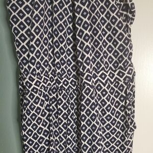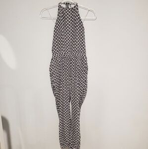 Brockton jumpsuit. Beautiful diamond design on this lightweight jumpsuit. Elastic on waist and ankle. Halter tie with a low back. Has pockets!!