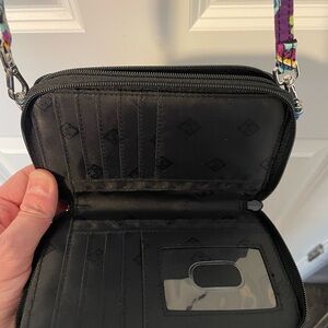 Stylish and versatile floral Disney crossbody bag. Features a vibrant black and blue design, perfect for any occasion. Comes from a smoke free but not pet free home.