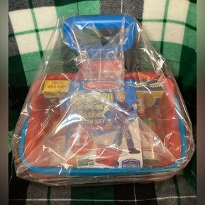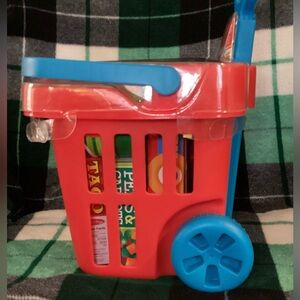 Melissa & Doug Fill & Roll Grocery Basket 11 Piece Play Set, for children ages 3 and older. The basket is durable with an extendable handle and is filled with play food boxes and cans! Children will enjoy the shopping experience as they shop for ‘groceries’! Fun, educational and entertaining. New in package.