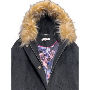 Eliza J - Belted Brushed Wool Blend with Faux Fur Trim - Size 10