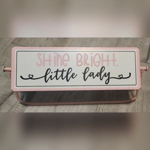 The message on the other side reads “Shine Bright Little Lady”. “Little Lady” is written in a sparkly black lettering.