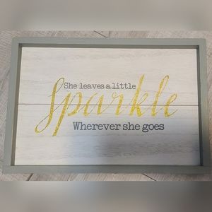 The beautiful wood wall plaque is framed in a beautiful soft shade of green and the word “SPARKLE” is written in gold sparkle lettering.