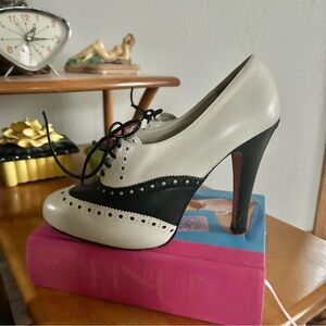 Retro Heels Spectator Ivory Black Oxford Lace up Bebe 8 Pinup 1940s style 40s