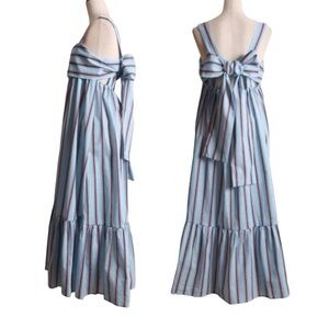 Anthropologie Zhu Sky Blue/Red Striped Maxi/Midi Sundress S