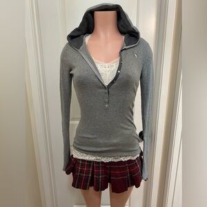 Y2k Abercrombie olive green button up 3/4 sleeve Henley.