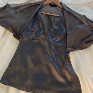 BCBGMaxAzria Elegant Silk Blouse in Pewter Gray