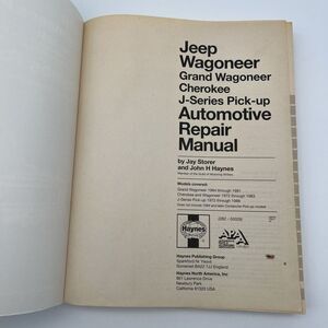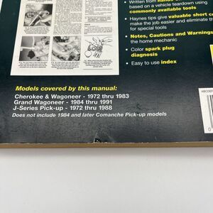 The product is a Haynes Repair Manual (50029) specifically tailored for the Jeep Wagoneer & Pick-up models manufactured between 1972 and 1991. This paperback manual provides detailed instructions for service and repair procedures for the Cherokee and J10 models. Published by Haynes Publications Inc in 1997 in the United States, this manual is designed to assist owners in maintaining and repairing their vehicles effectively. It is an essential resource for individuals looking to perform DIY maintenance on their Jeep Wagoneer & Pick-up models.