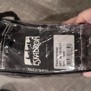 Eskadron horse bandages. Comes in a clear branded bag. 2 bandages used once, the others are brand new. Imported from Germany. Grey supersoft fleece. Handy labels for rolling. Velcro tab is gray/pink/cream. FS Horse. Discontinued