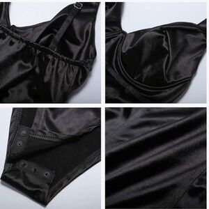 Women shiny thong cut bodysuit, pushed up by underwire, which can provide support lift and shape.