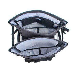 The Tack Sling – A medium convertible tote backpack with an open center sling for odd shaped/dirty items. Extremely versatile and can be worn as either a tote bag or backpack! A nice neutral grey color that's no longer sold on SSCY's website (stock photos are in black but this item is grey). I no longer work in an office so I don't have a need for this bag anymore. In like new condition, but has a few scratches on the buckles (pictured).