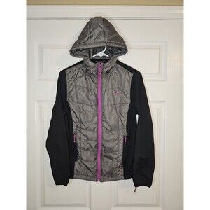 New Balance Hooded Jacket Full Zip Womens S Small Gray Black Purple Activewear