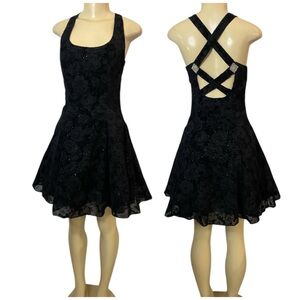 Zum Zum Vintage 90’s Y2K Black Floral Velvet Satin Sparkle Party Dress Size 5-6