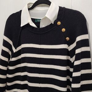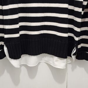 Lauren Ralph Lauren Women Black Striped Layered Cotton-Blend Sweater Size XL