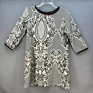 Isle by Melis Kozan Dress Women's Large White Black Knee Length Classic Cocktail