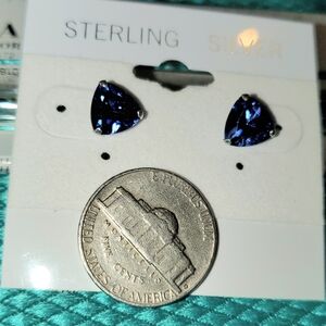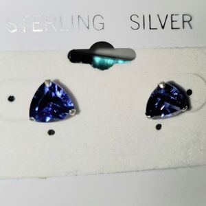 NWOT Sterling silver 8mm trillion cut 1 CT Each Cubic Zirconia Tanzanite Color