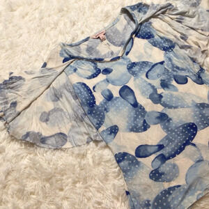 Juicy Couture Y2K Cape Top Blue Watercolor Floral Sequin Bedazzle Glam Small M