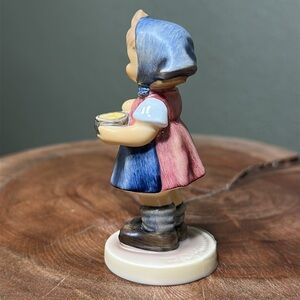 This Hummel “From Me to You” stands at 3-1/2" high and this one was made between 1995 and 1996 exclusively for members of the Goebel Collector's Club. It features a little girl holding a bowl of deliciousness that she’s ready to give to someone special! Wonderful collectible with vibrant hand painted colors!