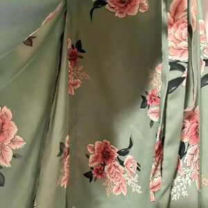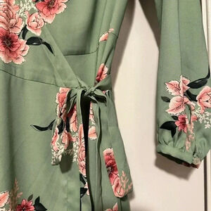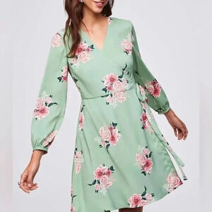 Loft floral midi lightweight light green long sleeve wrap dress size 00P
