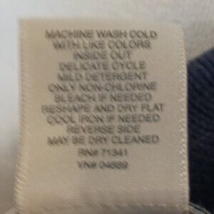 Care: Machine wash cold with like colors, inside out, delicate cycle. Mild detergent. Only non-chlorine bleach if needed, reshape and dry flat. Cool iron if needed reverse side. May be dry cleaned.