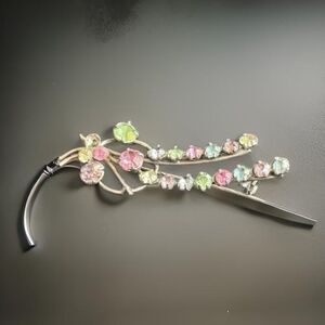Brooch Rhinestone Pastel Vintage Silvertone, 2 Inches