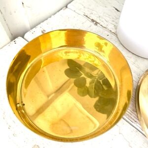 Vtg Heavy Brass Round Trinket Box Bowl Dish Enamel Lid With Flowers India 4.75”