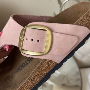 Birkenstock Gizeh big buckle sandals in pink nubuck leather