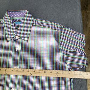 J. McLaughlin Button Down Dress Shirt Men's SZ Small Checkered Colorful Print