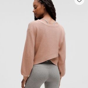 Can be worn either way. Worn twice. Oversized. I am a small but can wear this. This color is called Warm Beige, but definitely appears as pale pink.
