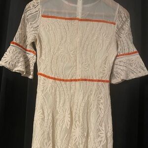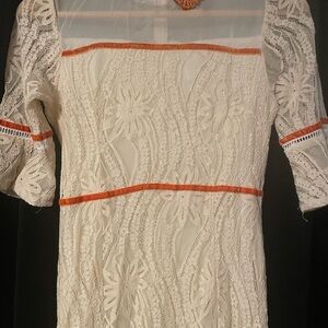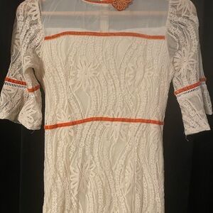 Vintage Cream Lace Dress with Orange Accents
