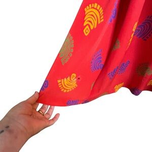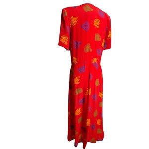 Bichon Red Midi Short Sleeve 1/2 Button Up A Line Print Dress w/ Shoulder Pads 6