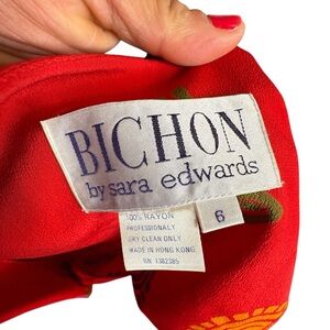 🔴5 for $40 SALE ! Bichon Red Midi 1/2 Button Up A Line Print Dress sz 6
