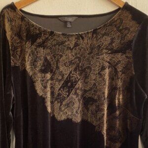 Soma Velvet Tunic Top XL Black Gold 3/4 Sleeve Scoop Neck Stretch Boho