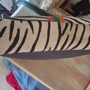 Zebra Print Horse Hair Crossbody Bag with Multicolor Stripe