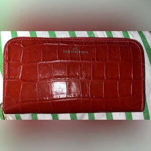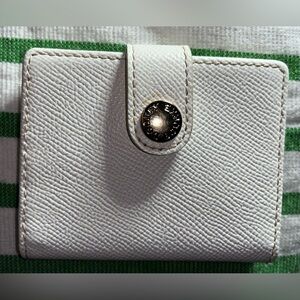 Stylish checkered wallet. Features a gold button clasp. Perfect for everyday use. It has some mild wear on the edges and on the interior, but great condition overall. Retail $698