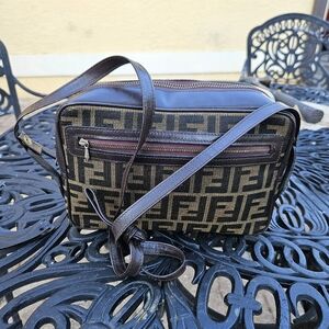 Vintage Fendi small shoulder bag. Fendi monogram handbag. 10" x6" , small wear on the top corner of leather. Very Nice bag. Shoulder strap. SAS Vintage.Fendi.