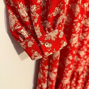 Black Tape Women’s Red Flowy Faux Wrap Midi Dress