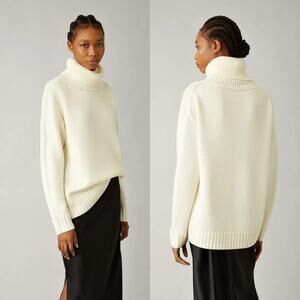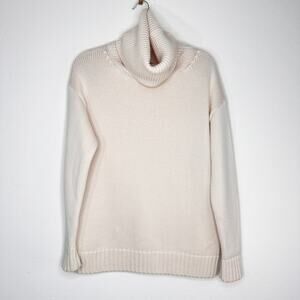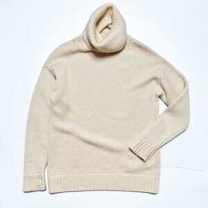 Joseph Chunky Knit Sloppy Joe Ivory Cream Wool Turtleneck Pullover Sweater Small