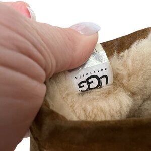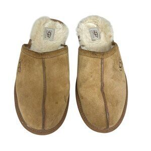 Ugg Australia Pearle Chestnut Brown Suede Sheepskin Men's Slippers Mules sz11