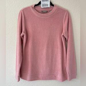 0309 - DENIM&CO Women’s Comfort Zone Baby Sherpa Crewneck Pullover Blush Pink