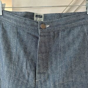 Brand new! Size 10. Never worn. Beautiful indigo herringbone. Model pic is for fit reference not the same color. Button fly