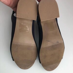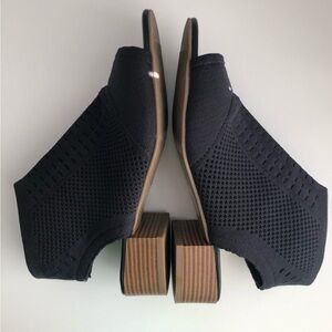 Cute and comfy black open toe shoe. Textile upper for superior comfort. 1.5" heel.