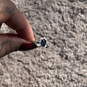 Solid 14kt White Gold Genuine Sapphire & Diamond Ring Size 8